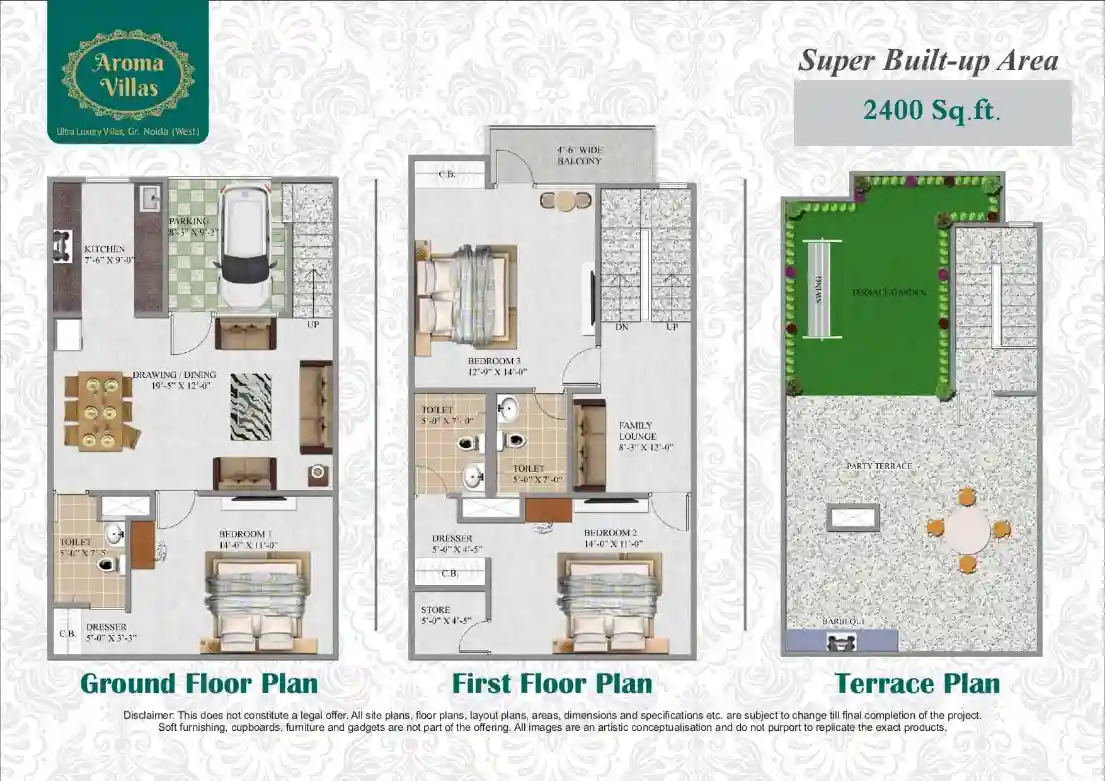 Aroma Villas Greater Noida West is an ultra-luxurious villa that represents stature and will help you realize that you are shining at the top of society when looking over the Aroma Villas Floor Plan, which includes a 3 BHK villas. It has a Super Build Area 1700 Sq. Ft, and 2400 Sq. Ft. Aroma Villas Site Plan is unique, as it has luxury amenities and features you might not find elsewhere. It makes the life of people so convenient.