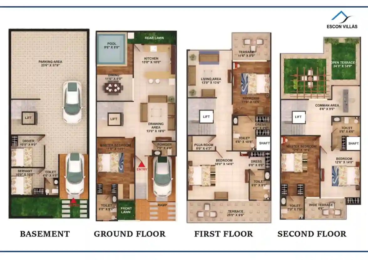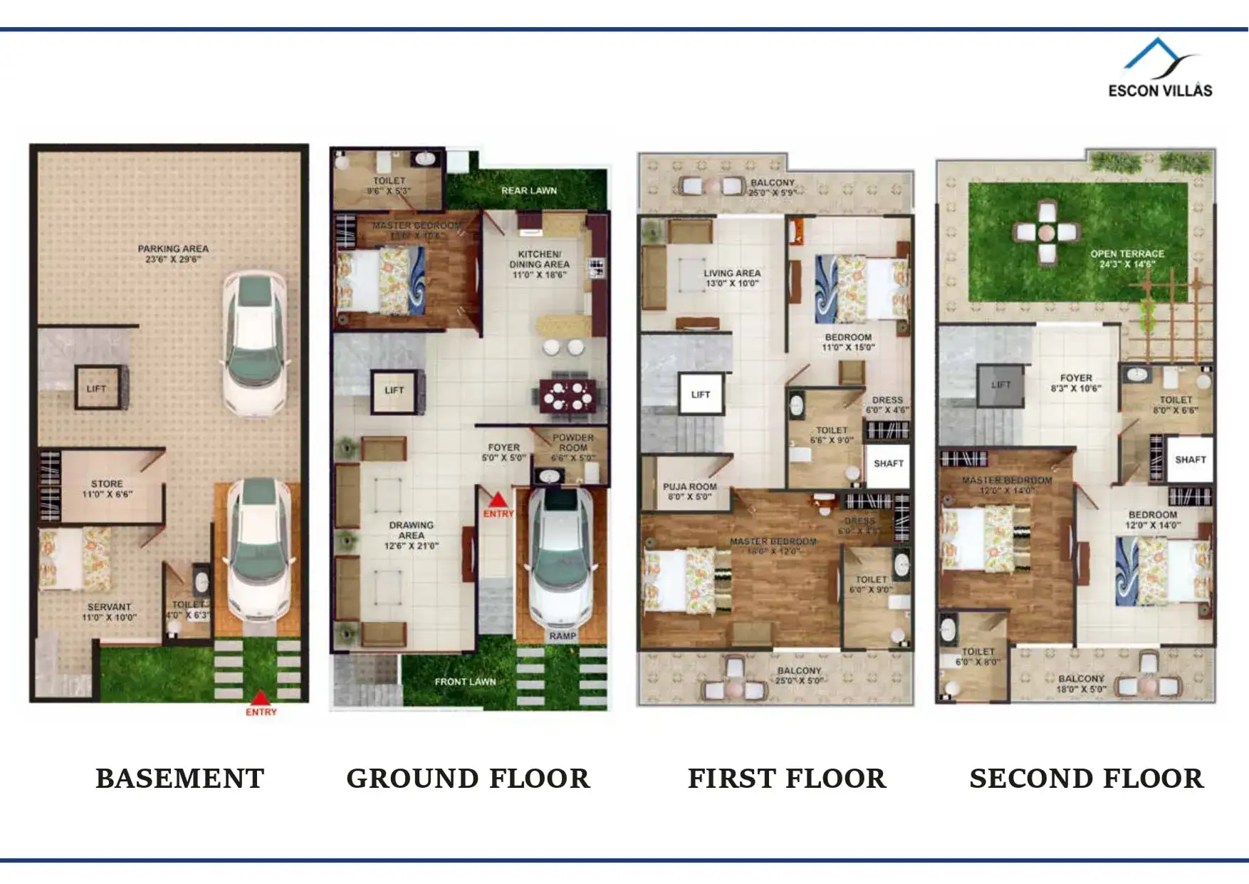 If you want to get a better idea of the layout of the Escon Villa, it's a good idea to check out the Escon Villa Floor Plan. It will show you how everything's set up. The units in Escon Villas come in two different configurations, which are 4BHK and 5BHK.