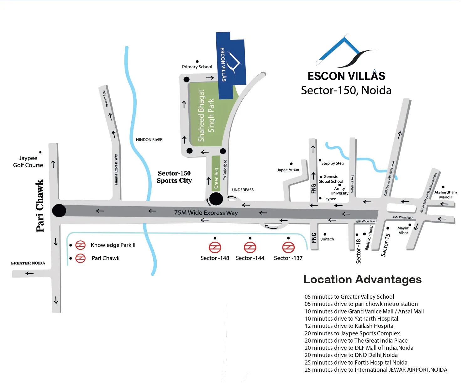 - There are top international schools and highly functional medical facilities near Escon Villa Sector 150, Noida Expressway