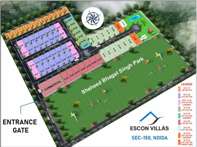 - Escon Villa 150 features a well-designed residential floor plan and wide roadways.