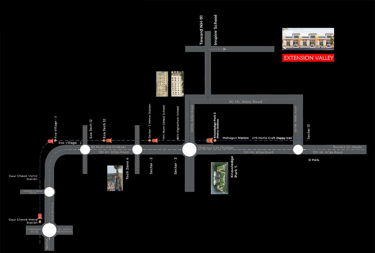 Ans: The starting price is Rs. 60 Lacs* but check Extension Valley Villas price list to get better overview about Extension Valley Villas prices.