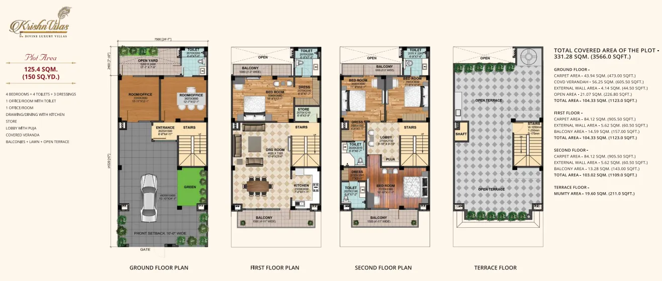 | 4 BHK + 4T | 125 Sq.Mtr | |