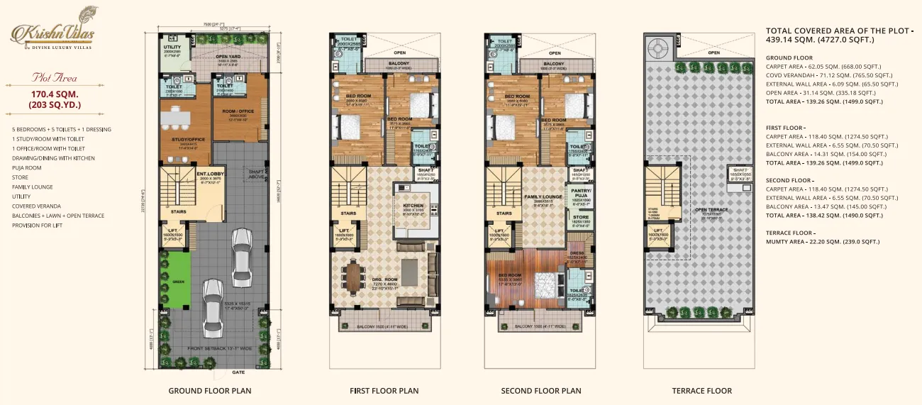 | 5 BHK + Store + Puja Room + 5T | 170 Sq.Mtr |