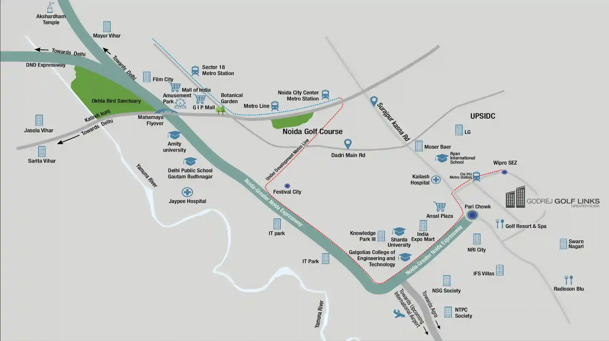 The location of the Godrej Crest Villas offers quick access to other major areas of Noida and Delhi. The closeness to the metro corridor and the expressway make it quite smooth to commute to the essential places.