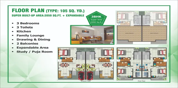 | 3 BHK + Store Room + 3T | 2050 Sq.Ft |