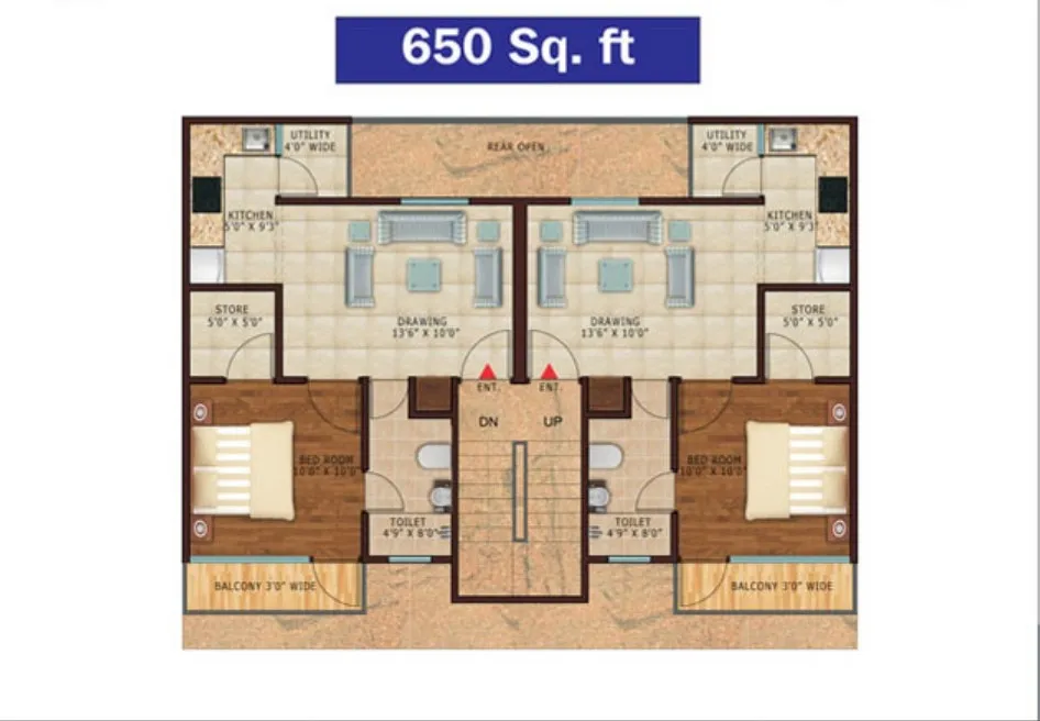 | 2 BHK + 2T | 650 Sq.Ft | |