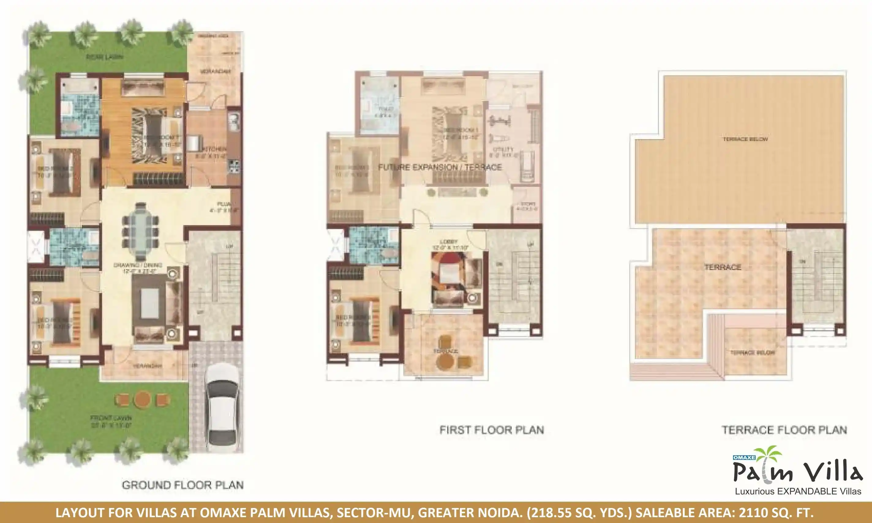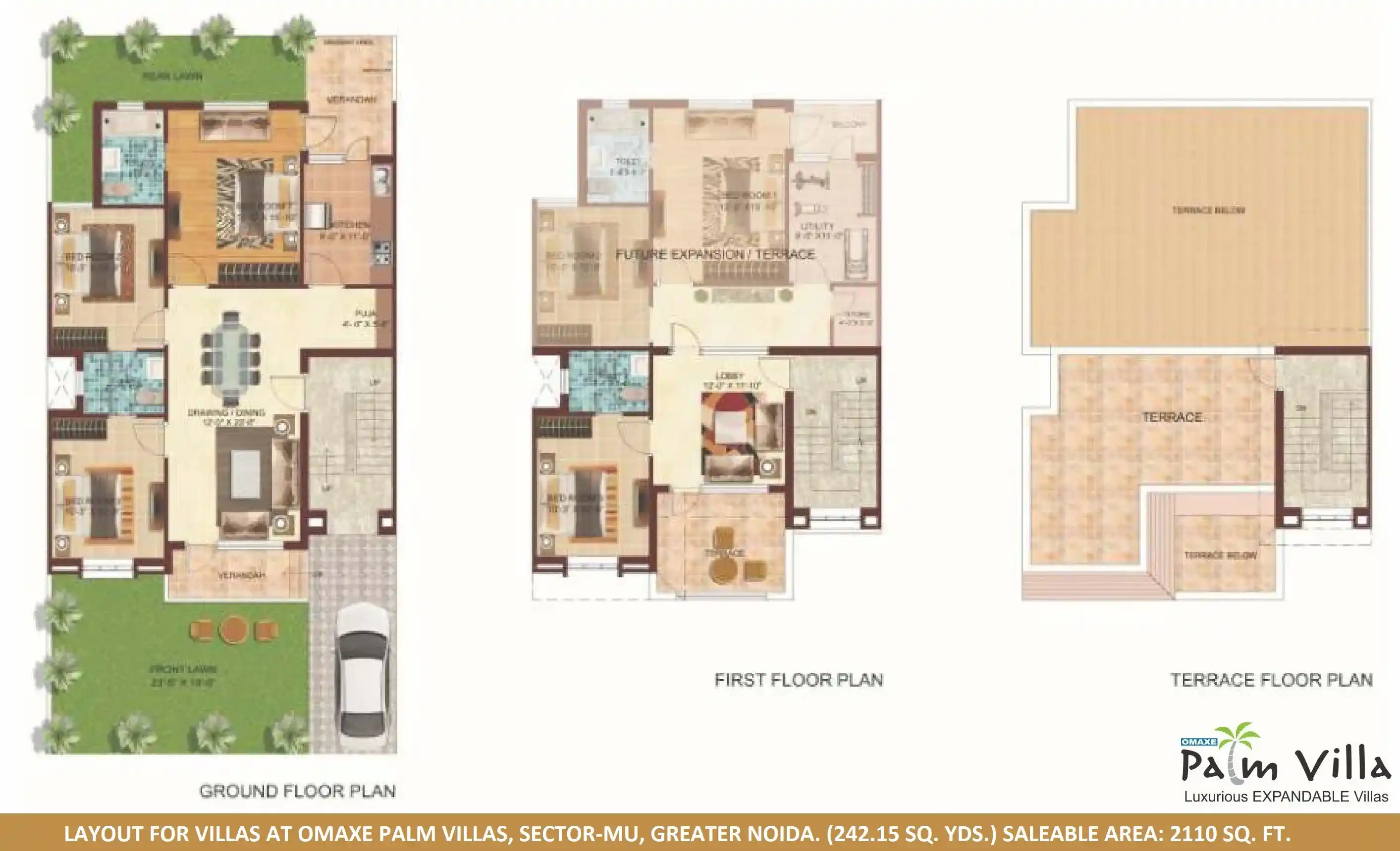 Omaxe Palm Greens Villas has a variety of 3 BHK Villas to choose from. The size of the land included with this property is determined by the bedroom Counts. Omaxe Palm Greens Villas is a multi-story villa complex with a total area of 23 acres.