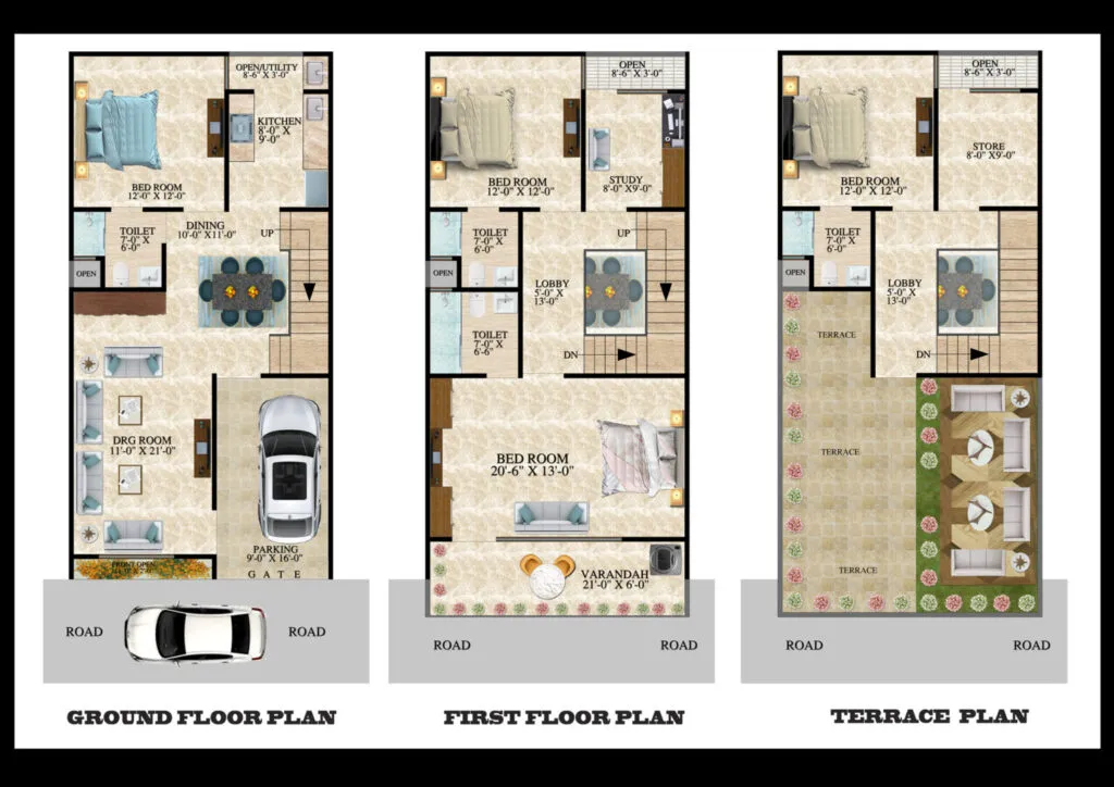 | 3 BHK + Study Room + 3T | 2050 Sq.Ft | |