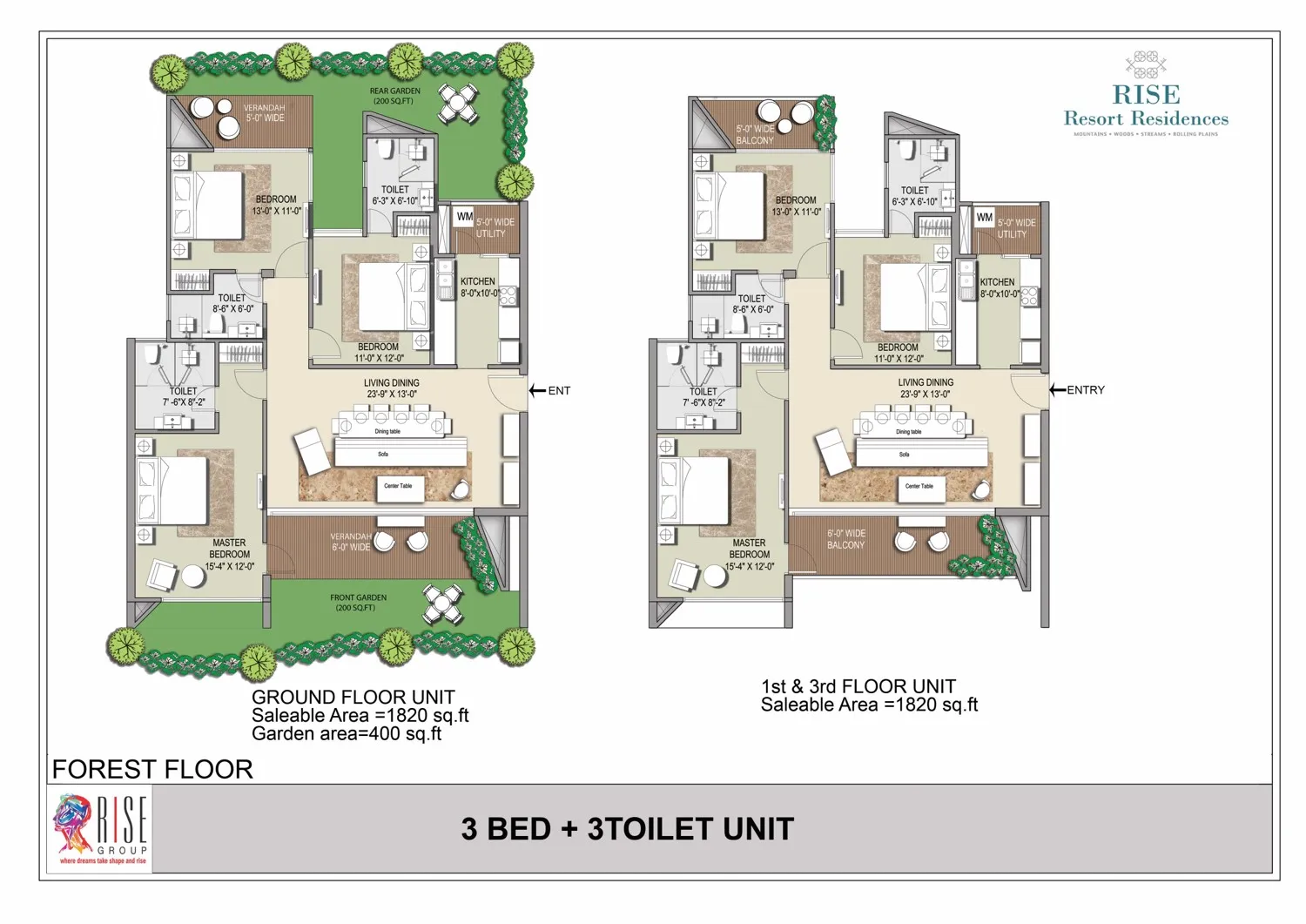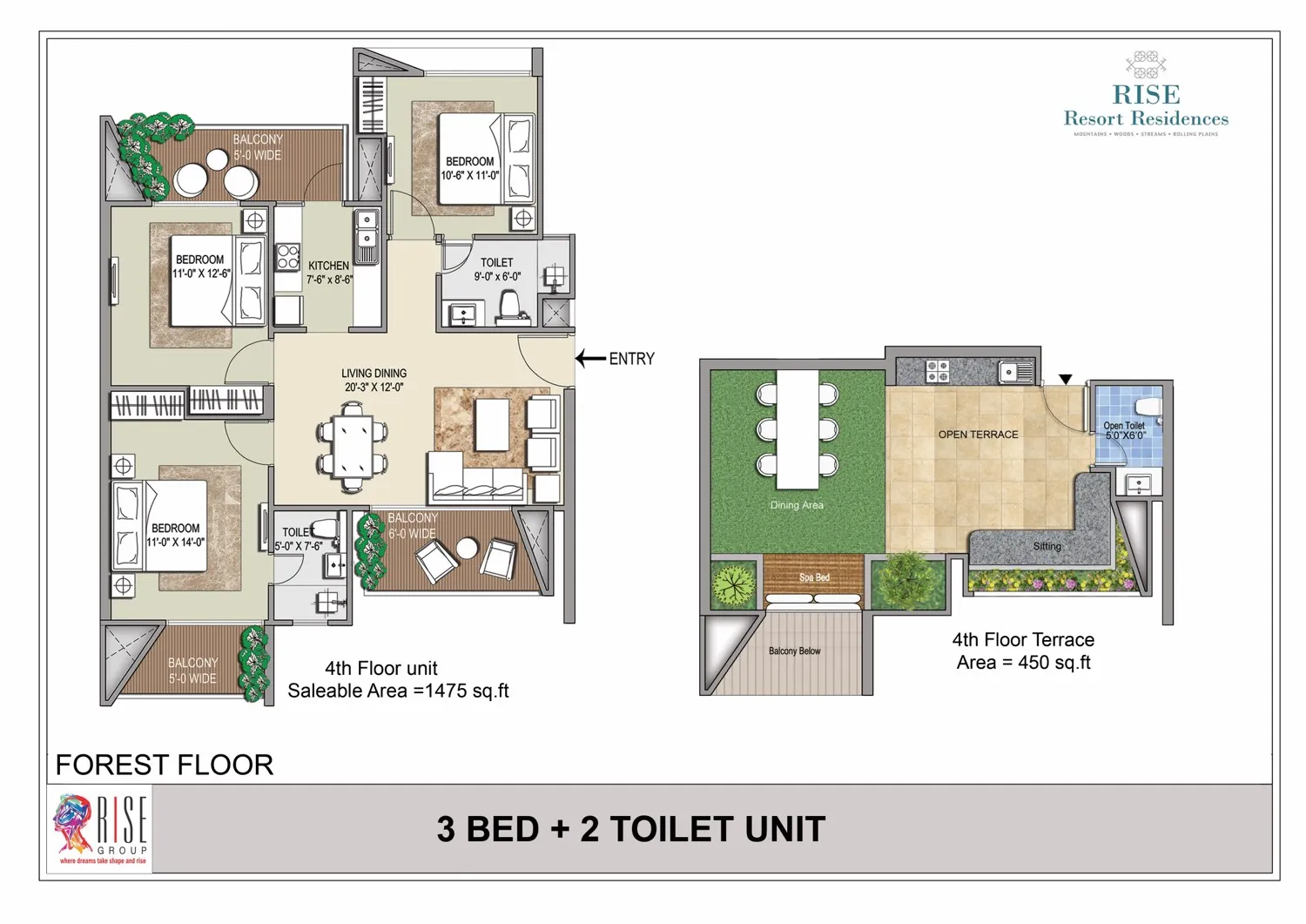 Ans: Rise Forest Floors Villa ranges between 1475 to 1820 Sq.Ft