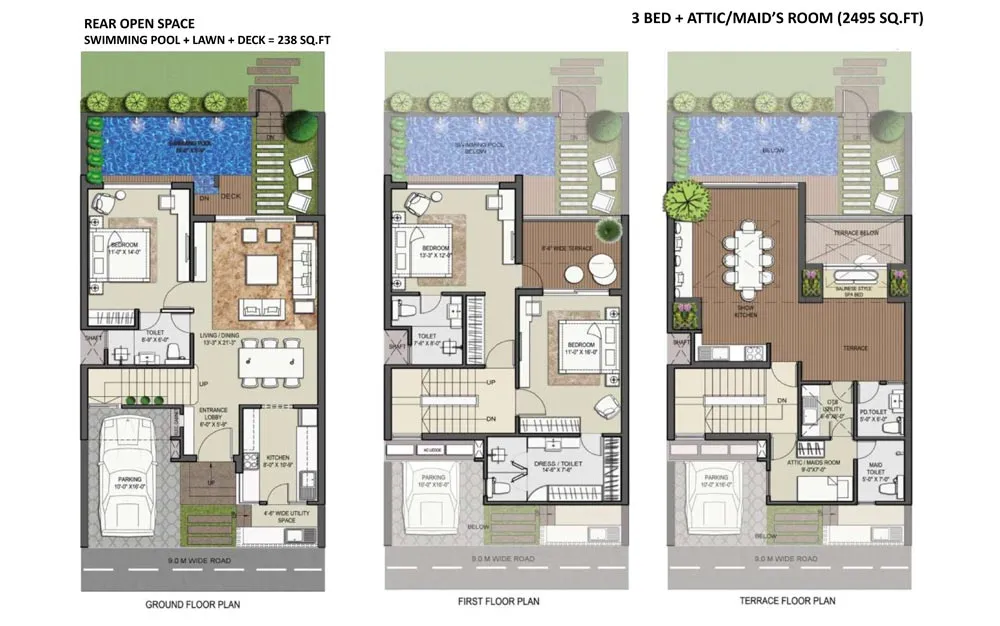 | 3 BHK + Servant Room + 3T | 2495 Sq.Ft | |