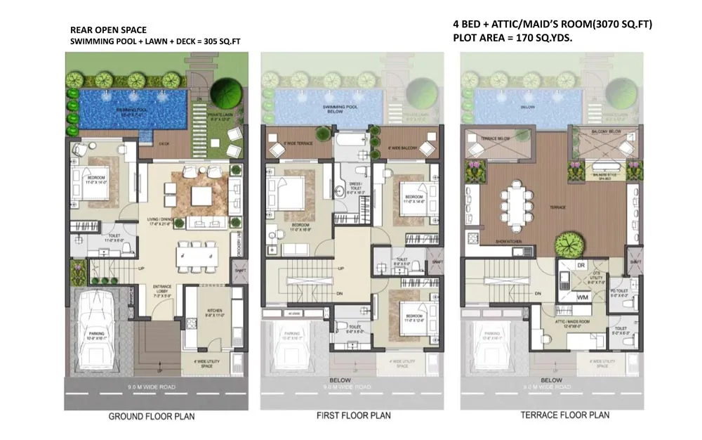 | 4 BHK + Servant Room + 4T | 3070 Sq.Ft |