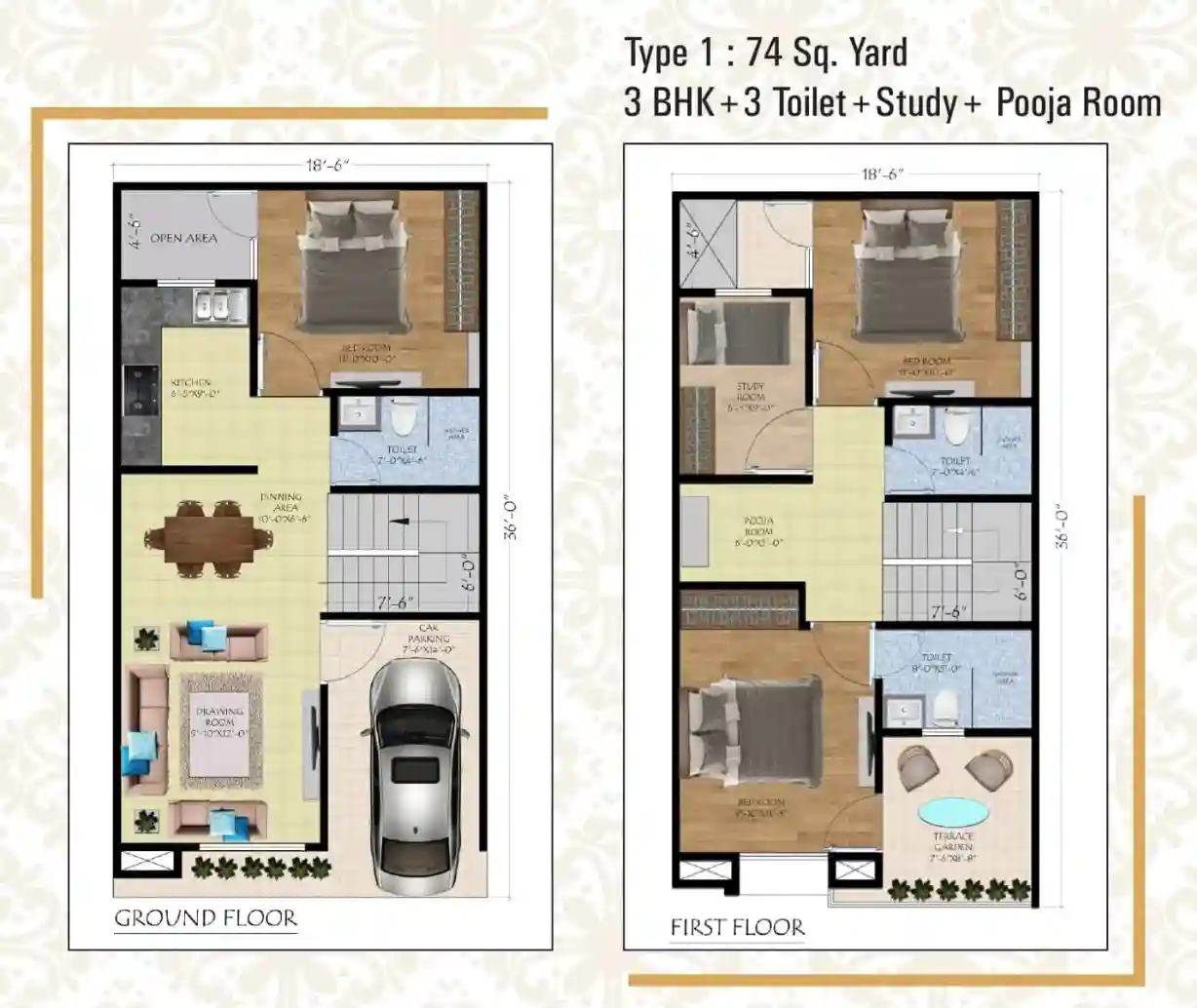 | 3 BHK + Study Room + 3T | 74 Sq.Yrd | |
