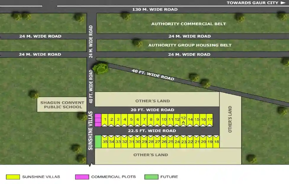 - Sunshine Villa is located in Noida Extension, which has become a popular residential area due to its proximity to major business hubs, commercial centers, and educational institutions.